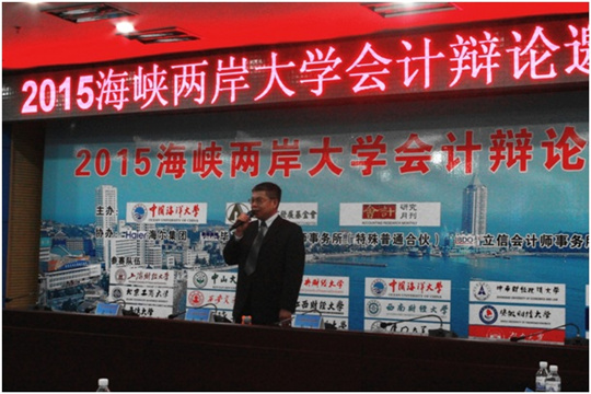 “海峡两岸大学会计辩论邀请赛”是由财团法人台湾会计研究发展基金会、台湾《会计研究月刊》杂志社发起,由大陆具有会计学博士点的院校和台湾会计高校轮流主办的一项重要赛事,自2001年以来,已举办了十余届,在海峡两岸会计界享有盛誉。本次邀请赛,由中国海洋大学主办,邀请了国内会计学界最高水平的厦门大学、上海财大、中央财大、中南财大、东北财大、西安交大及江西财大、安徽财大等15所大陆高校及台湾地区的台湾大学、东吴大学、台北商业大学等18所高校共计200余人参加比赛。立信会计师事务所(特殊普通合伙)与海尔集团、毕马威华振会计师事务所(特殊普通合伙)共同协办了本次邀请赛。