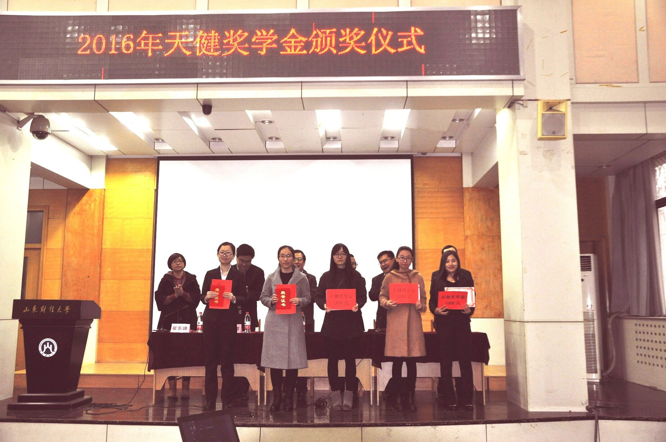 2016年11月21日,2016年山东财经大学天健奖(助)学金颁奖仪式暨校园宣讲会在该校燕山校区第三报告厅隆重举行。天健会计师事务所副总裁王国海,山东分所总经理刘加宝,总经理助理管金明,山东财经大学会计学院党委书记、副院长张涛,副院长孙文刚,会计学院党委副书记崔东峰等出席了此次颁奖仪式。
