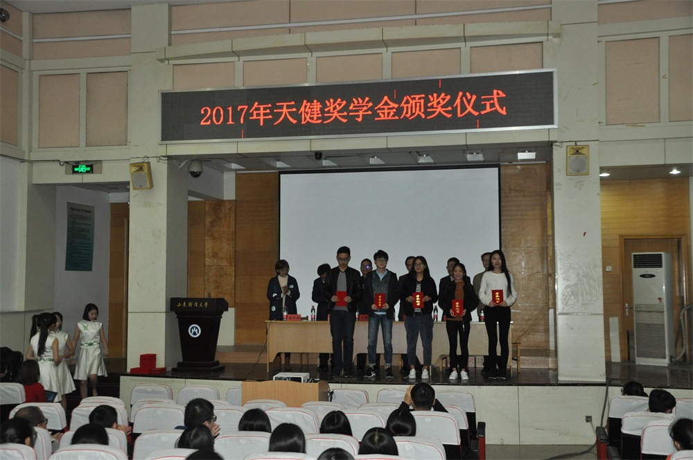 2017年10月24日,2017年“天健奖(助)学金”颁奖仪式在山东财经大学燕山校区第三报告厅隆重举行。山东财经大学会计学院党委书记、副院长张涛,副院长王守海,会计学院党委副书记崔东峰、天健会计师事务所副总裁王国海,副主任会计师程志刚、山东分所总经理刘加宝,总经理助理管金明等出席了颁奖仪式。