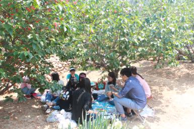接下来便是活动的采摘环节,大家走进了绿意盈盈的果园中,仿佛进入了一片诗情画意的小天地,放眼望去,偌大一片樱桃树,葱葱翠色,万千点红,一颗颗熟透的樱桃,挂满枝头,在阳光的照耀下晶莹剔透,像一颗颗耀眼的红宝石,摘一颗放在嘴里,酸甜可口,回味无穷。斑驳的树荫下,大家席地而坐,谈笑风生,微风阵阵,吹来一阵阵果香,也吹来了同事们的欢声笑语,一片惬意。