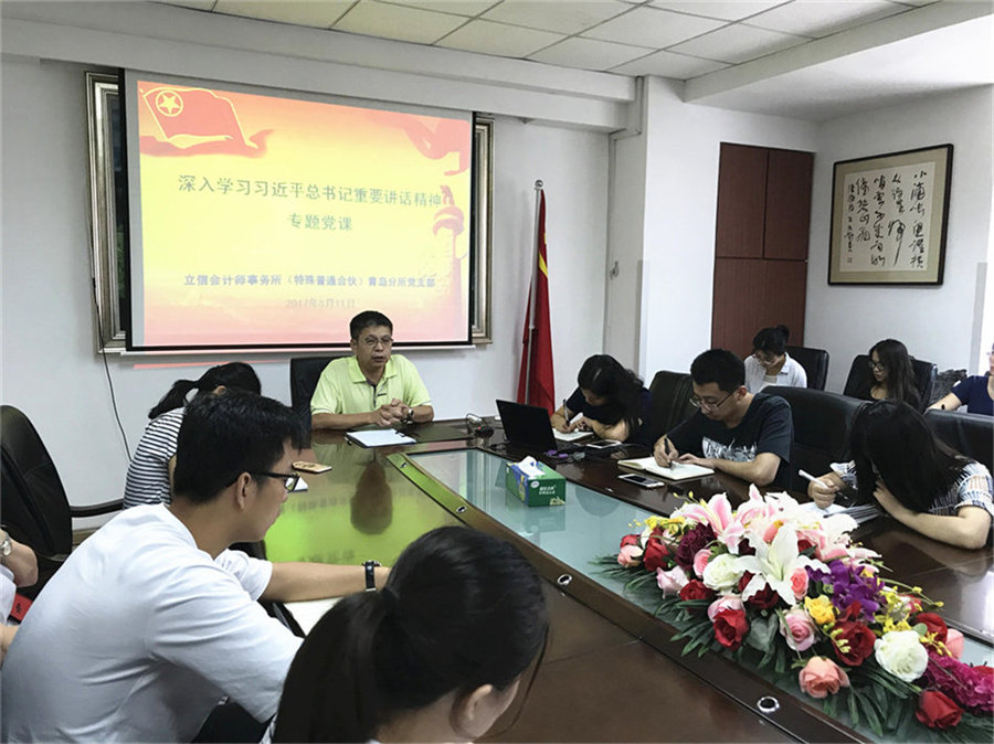 2017年8月11日下午,立信会计师事务所(特殊普通合伙)青岛分所(以下简称立信青岛分所)党支部组织全体党员举行了“深入学习习近平总书记重要讲话精神”专题党课,立信青岛分所党支部书记林盛同志主持了本次专题党课。