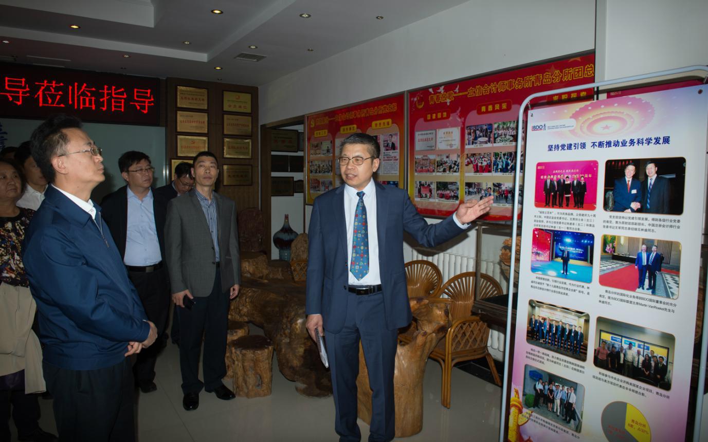 会议分两个阶段进行,现场观摩和工作会议。立信青岛分所被青岛市委组织部和市行业党委确定为党建工作观摩点。会议伊始,与会人员分两批观摩立信青岛分所党建工作,分别由青岛市组织部副部长陈大维同志和市财政局党委委员、副局长、市注册会计师行业党委书记陈伟同志带队考察。在考察过程中,林盛同志热情介绍了事务所发展历史、业务与党建工作情况,现场讲解了办公楼党建园地、展览园地、党员学习室等多个学习园地。陈部长和陈局长等领导同志对事务所的党建工作给予了充分肯定,认为立信青岛分所党建工作扎实、措施得力、特色鲜明、效果突出,尤其是党支部坚持以党建带队伍、以党建促发展,取得了可借鉴的好经验,为行业基层党组织树立了标杆。