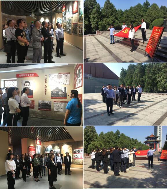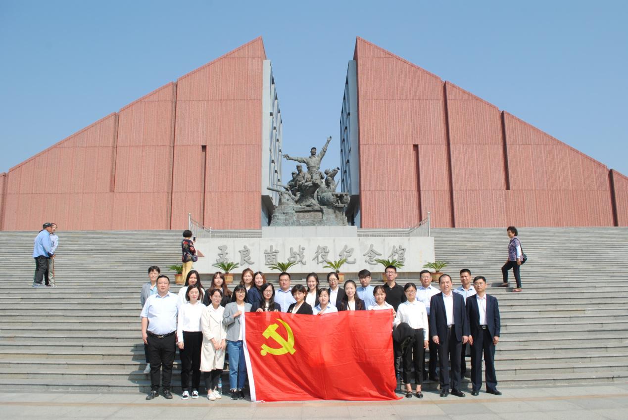 在孟良崮战役纪念馆,大家在讲解员的引导下,通过观看陈列的实物和图片,了解孟良崮战役敌我双方斗智斗勇以及我华东野战军指战员奋勇杀敌、浴血奋战,在极其艰苦的条件下夺取抗战胜利的英雄事迹和老区人民的无私奉献精神,最终取得全歼国民党王牌师并击毙师长张灵甫的全部过程。大家真切感受到沂蒙人民踊跃支前、无私奉献的感人事迹,深刻领悟到“兵民是胜利之本”、“群众是真正的英雄”的真理。之后,怀着崇敬的心情瞻仰粟裕将军的墓地和烈士陵园。在孟良崮战役革命烈士纪念碑前,党员们在党支部书记刘加宝同志的带领下,举行重温入党誓词的宣誓仪式,全体党员举起右手,面向党旗,庄严宣誓。