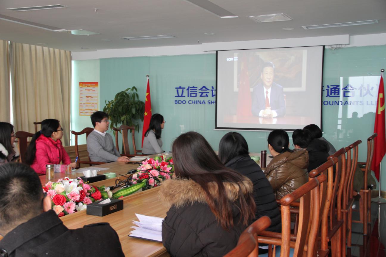 天道酬勤,日新月异。新年前夕,国家主席习近平发表二〇一八年新年贺词,立信会计师事务所(特殊普通合伙)山东分所及时组织员工在党员活动室观看了习近平主席的新年贺词视频。