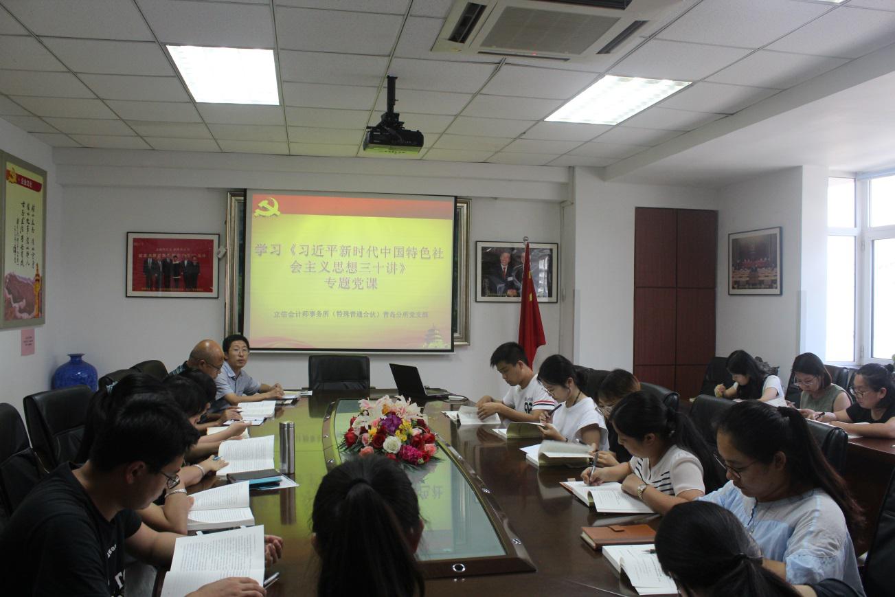 8月10日下午,立信会计师事务所(特殊普通合伙)青岛分所(以下简称“立信青岛分所”)党支部组织全体党员、党员发展对象、入党积极分子、团员代表、员工代表,开展了学习《习近平新时代中国特色社会主义思想三十讲》专题党课。