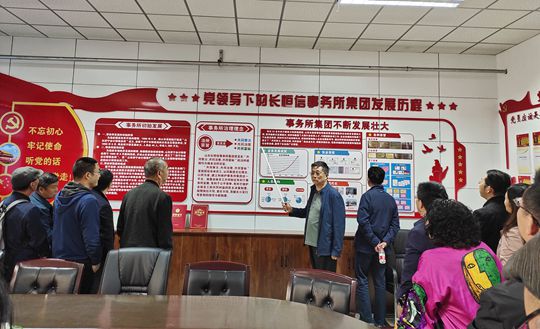 根据行程安排,16日上午,重庆一行来到山东长恒信会计师事务所进行实地参观,在负责人李志文的带领下,观看了事务所的发展历程宣传片,参观了党建工作展示墙,深入了解长恒信在脱钩以后走什么样的道路、怎样发展以及“共同努力、共同治理、共同富裕”的经营理念,尤其是在扶贫工作的创新举动、企业文化与育人留人的先进理念和实现法人治理结构与企业文化深度融合等典型经验和做法。
