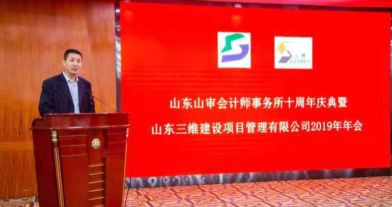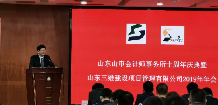 2019年11月16日,山东山审会计师事务所10周年庆典暨山东三维建设项目管理有限公司年会在石岛山庄胜利召开。公司董事长郭法远为双庆活动作了主题发言,山东省注册会计师协会副会长兼秘书长梁仕念、山东诗词学会会长赵润田、山东省建设工程标准造价协会秘书长于振平、山东财经大学合作发展处处长刘奇耀出席并分别进行致辞。两公司领导及部分员工代表100余人参加了活动。