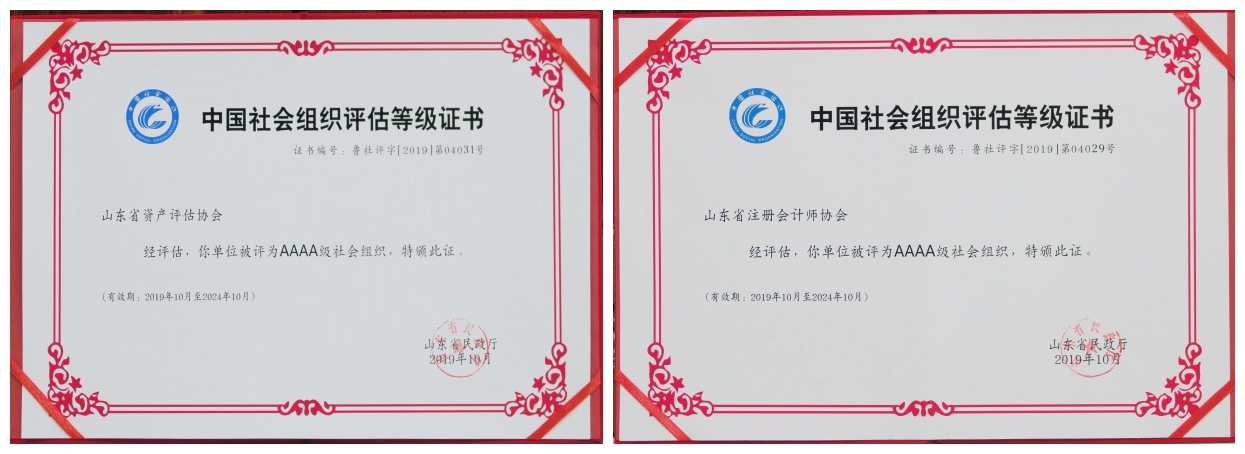 2019年的第四批省管社会组织评估工作,系省民政厅按照省委办公厅、省政府办公厅《关于改革社会组织管理制度促进社会组织健康有序发展的实施意见》(鲁办发〔2017〕5号),和《关于加强党的政治建设的意见》等规定,重新修订了评价指标,专门设立了党建评估指标,细化了评估标准,提高了对社会组织的管理要求。协会根据100余项评估指标,按照实事求是、客观公正的原则,逐项进行了自评,编制了《山东省社会组织等级评估评估报告》并呈报省社会组织管理局进行审核。9月20日,社会组织评估工作组来协会进行现场验收测评。工作组按照指标要求全面评估了协会工作状况,对协会办公基础条件、内部治理、工作绩效、诚信建设、社会评价、党的建设等方面的工作给予充分肯定,对国际合作、反映诉求等方面的工作提出了更高要求。此次等级评估历时两个多月,经评估委员会最终审核,省注协、省评协首次参加社会组织评估即获得4A级称号。