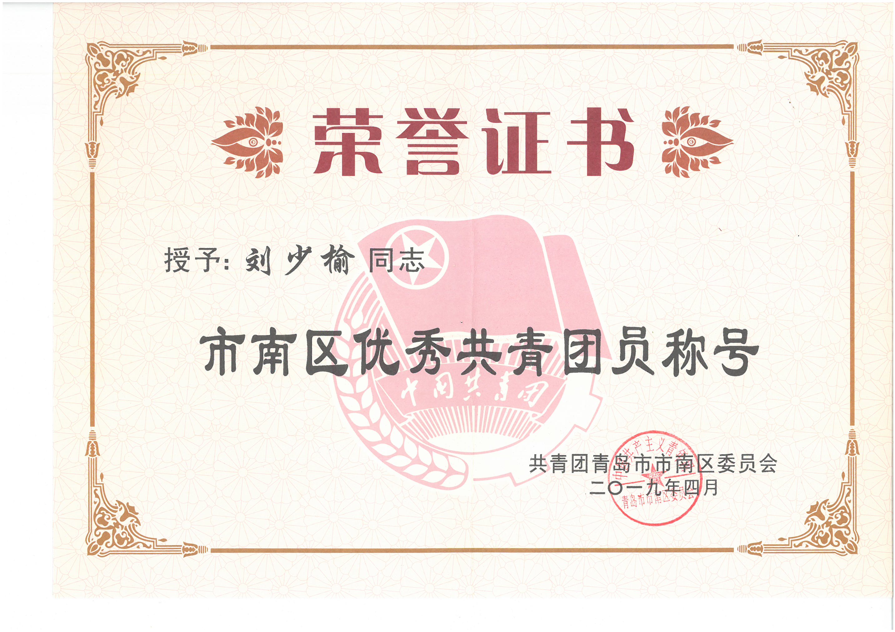 2019年4月29日,青岛市市南团区委召开纪念五四运动100周年表彰大会暨“新时代市南最美青年”分享会,会议宣读了市南区五四表彰决定。其中,共青团立信会计师事务所青岛分所团总支被共青团青岛市市南区委员会授予“市南区五四红旗团支部”、立信青岛分所的刘少榆同志被授予“市南区优秀共青团员”称号。