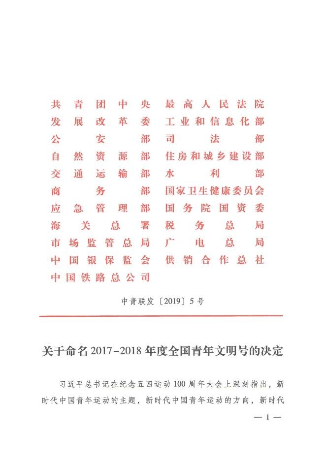 近日,共青团中央等多部委联合下发《关于命名2017—2018年度全国青年文明号的决定》,天健会计师事务所(特殊普通合伙)山东分所获此殊荣。
