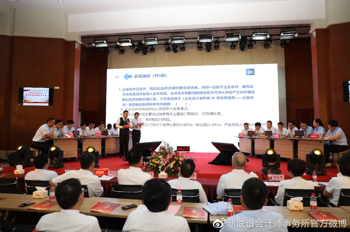 为积极推动 “资本市场业务知识学习月”活动,全面提升员工的学习主动性和从事高端业务的专业胜任能力,以实际行动向党的98周年华诞献礼。2019年7月5日,新联谊会计师事务所“资本市场业务知识大赛”暨“庆祝建党九十八周年歌咏比赛”拉开了帷幕。