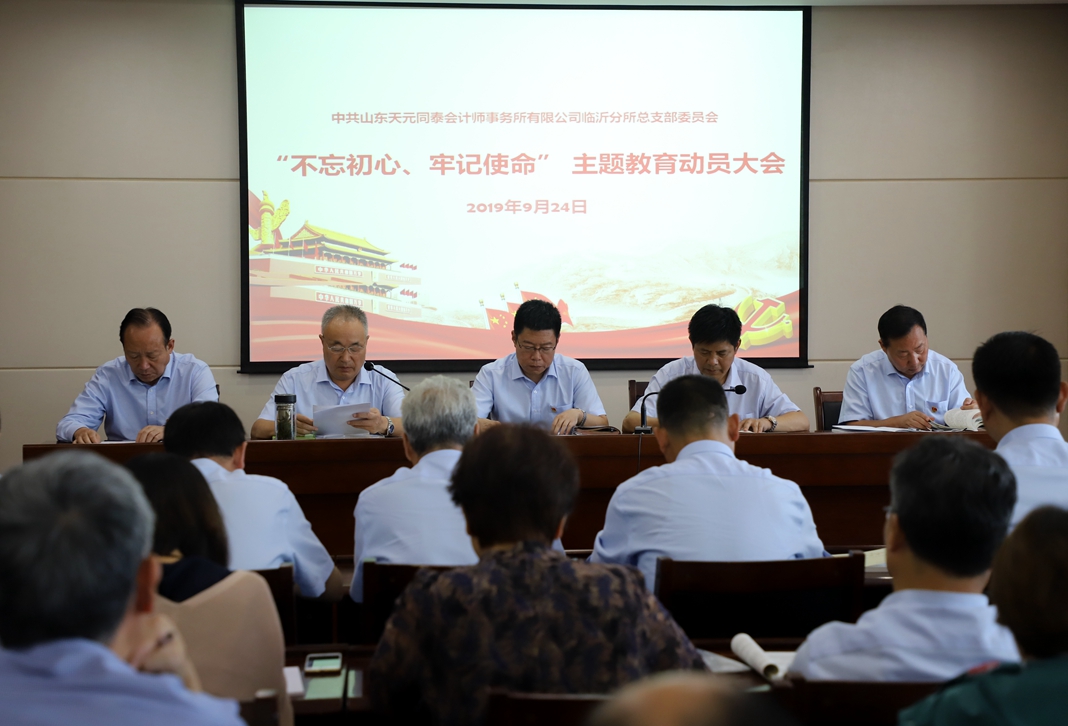 日前,中共山东天元同泰会计师事务所党总支召开动员大会,在全所范围内全面启动“不忘初心、牢记使命”主题教育活动。会上传达学习了省、市行业党委的有关文件,公布了事务所“不忘初心、牢记使命”主题教育活动实施方案,总支书记裴波苓作了主题教育工作部署,对开展各项活动进行了安排。同时,组织全体党员进行第一次集中学习。