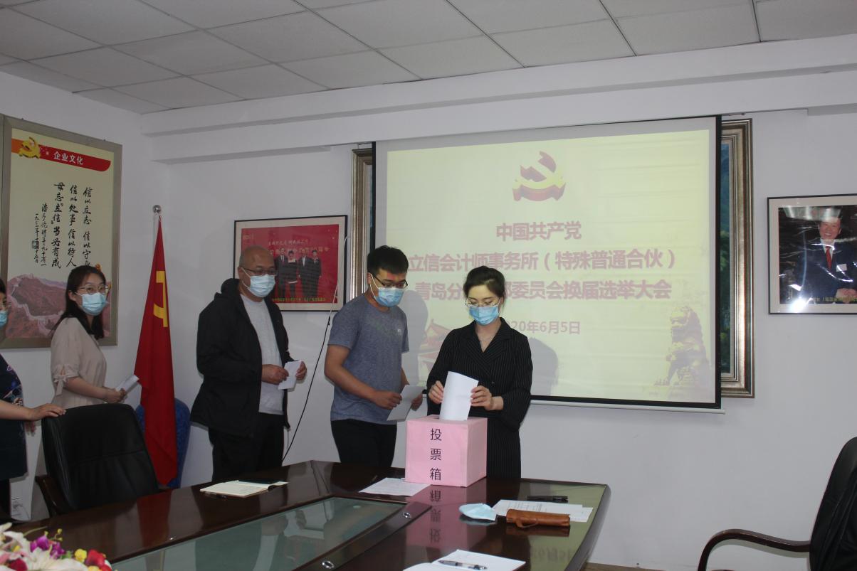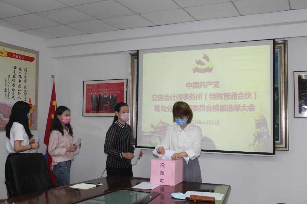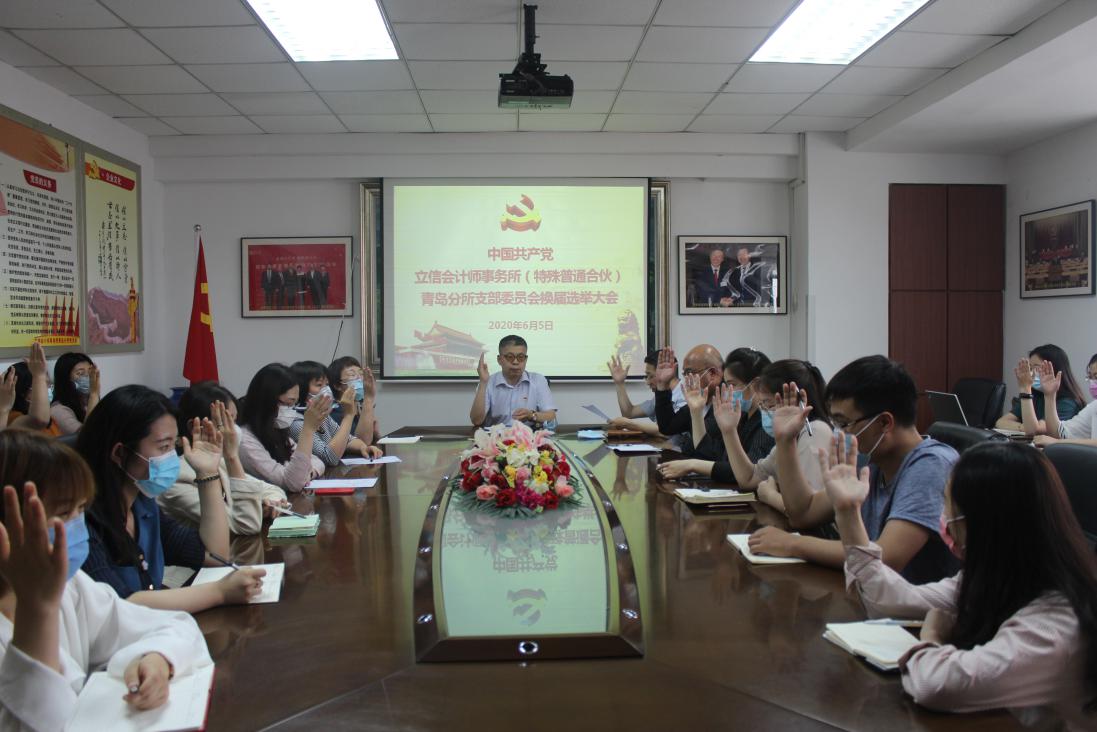 经中国共产党青岛市注册会计师行业委员会批准,根据《中国共产党章程》和《中国共产党基层组织选举工作暂行条例》的相关规定,6月5日下午,立信会计师事务所(特殊普通合伙)青岛分所党支部组织全体党员召开换届选举大会。林盛同志代表原党支部做了工作报告。全所32名正式党员,28人参加,4人请假,符合开会条件。
