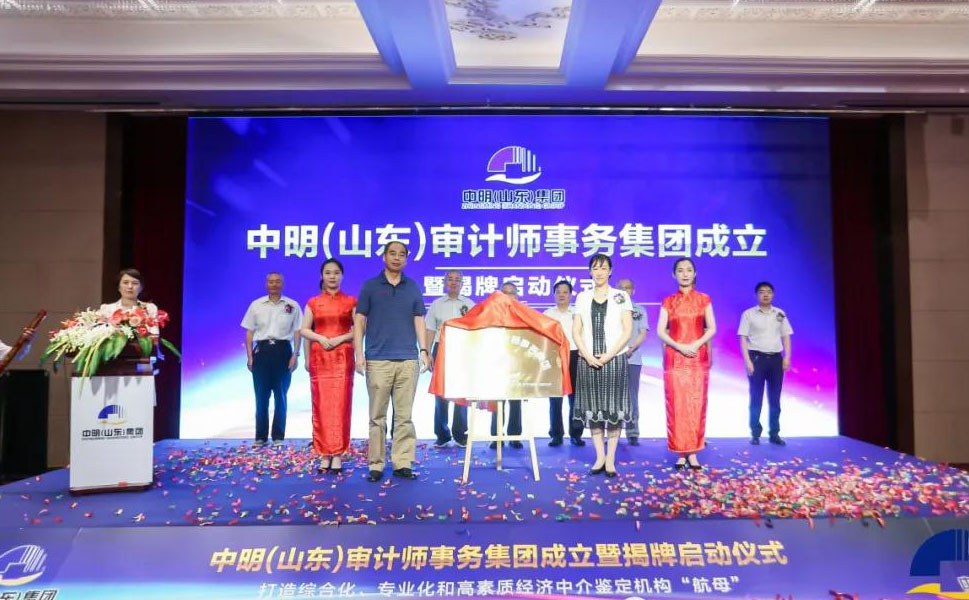 7月10日上午,中明(山东)审计师事务集团(以下简称中明(山东)集团)揭牌仪式在济南市蓝海御华大饭店举行。中明(山东)集团是山东省首家集审计、工程咨询、工程造价咨询、税务咨询与鉴定、会计服务、资产评估及土地房地产评估等为一体的综合性、多元化鉴定与咨询类集团公司。中明(山东)集团的成立,标志着我省咨询与鉴定业规模化、多元化、集团化开启了新纪元,为服务全省经济建设开始了新篇章。省注协韩群会长、省评协张焕平会长应邀出席揭牌仪式。