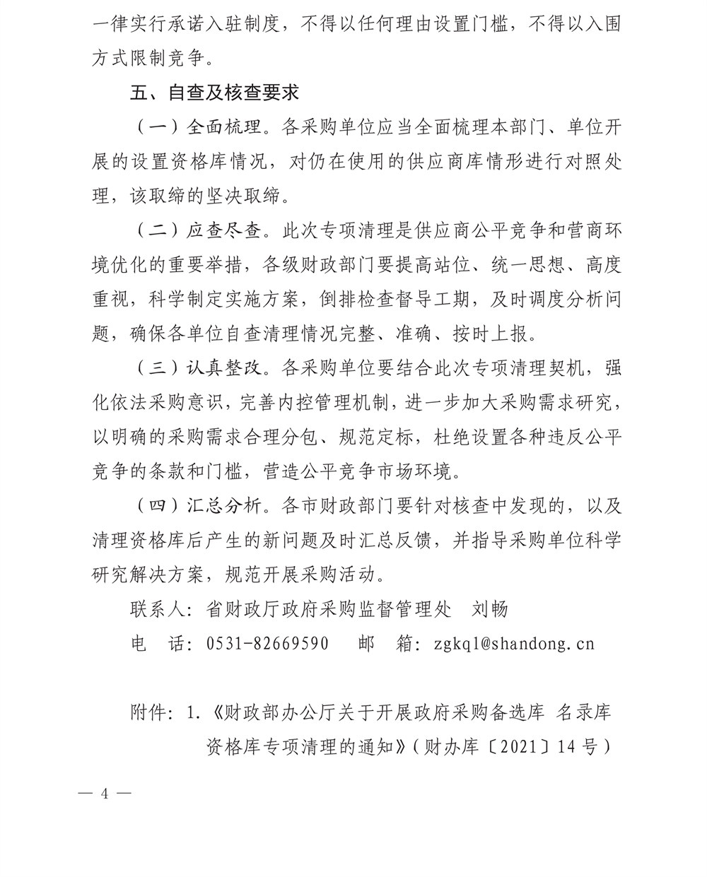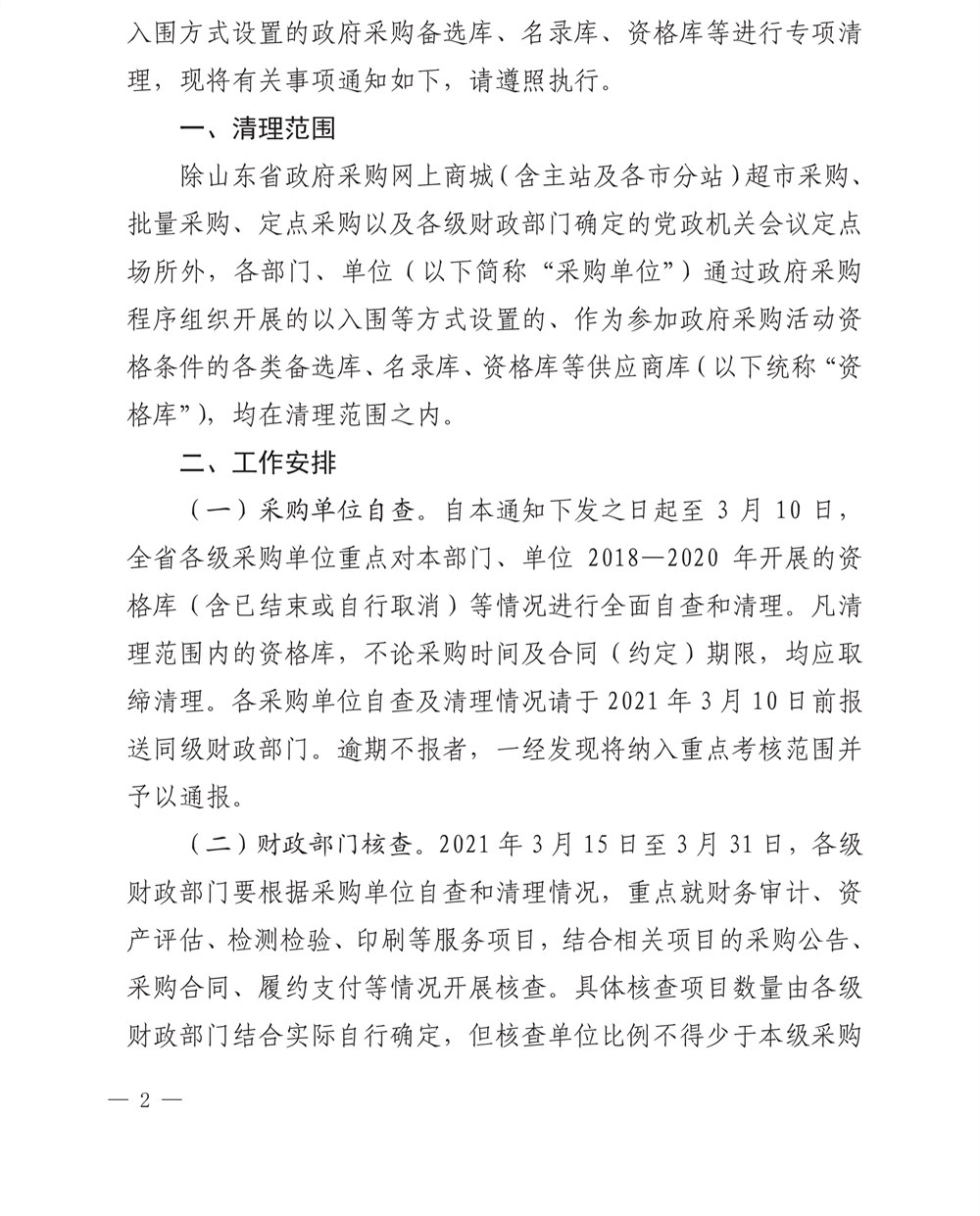 山东省财政厅关于开展政府采购备选库名录库资格库专项清理的通知