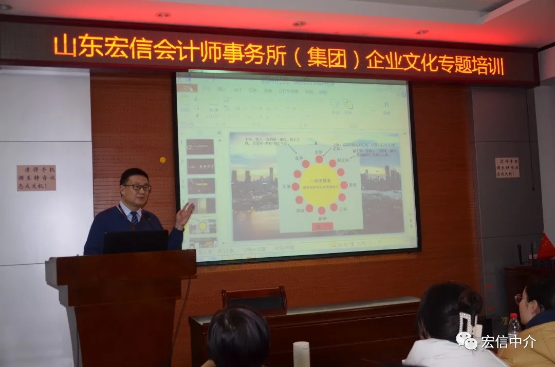 2021年3月6日,山东宏信会计师事务所(集团)企业文化专题培训在宏信胜利二路办公区201会议室成功举办。本次培训主讲人为集团公司行政总监郑永东,现场100余位员工参加了培训。
