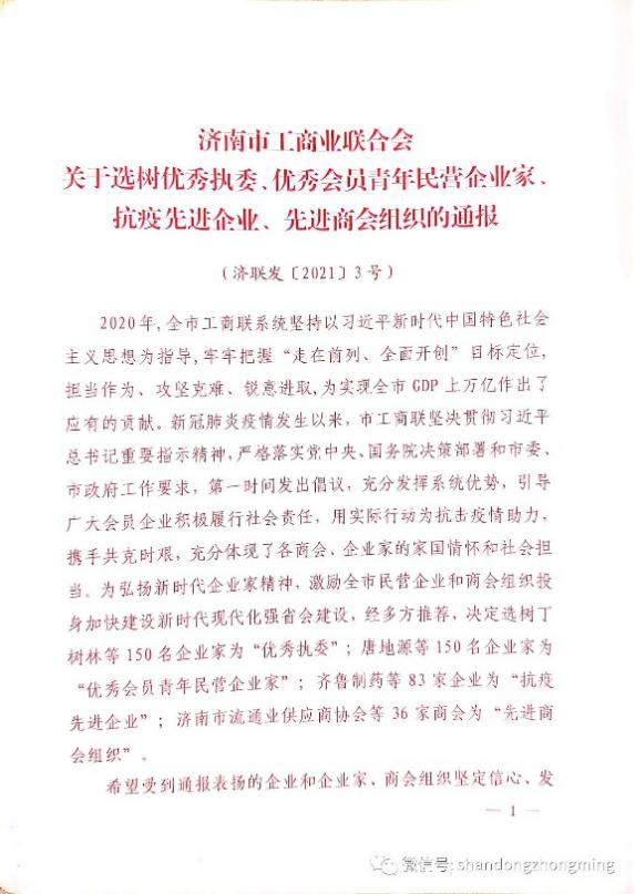 为牢牢把握“走在前列、全面开创”目标定位,充分发挥系统优势、引导广大会员企业为弘扬新时代企业家精神,激励全市民营企业和商会组织投身加快建设新时代现代化强省会建设,济南市工商联近日表彰一批优秀企业、企业家和商会组织。