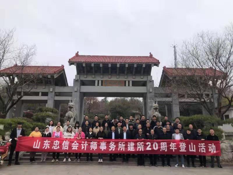 阳光明媚,春意盎然。在这个美好的日子里,山东忠信会计师事务所有限公司迎接建党一百周年、迎来建所二十周年,于2021年3月13日上午组织开展了登山活动,47名员工积极参加。通过大力开展全员健身活动,丰富和活跃员工的文体活动,进一步增强凝聚力、向心力,促进企业和谐发展,展现我所员工良好精神风貌,培养大家强身健体的意识。