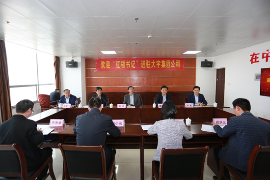 山东大宇集团董事长孙易同志代表集团致欢迎辞,大宇党支部书记王鹏飞同志汇报了支部建设情况,孙易同志表示组织上选派“红领书记”绪红山同志到大宇党支部任职,是对大宇集团党建工作和企业发展最大的支持,有利于大宇党支部规范化建设,能够进一步发挥党建引领作用,为集团的党员提供管理和服务,团结凝聚员工力量,发挥党员先锋模范作用,促进集团健康发展。