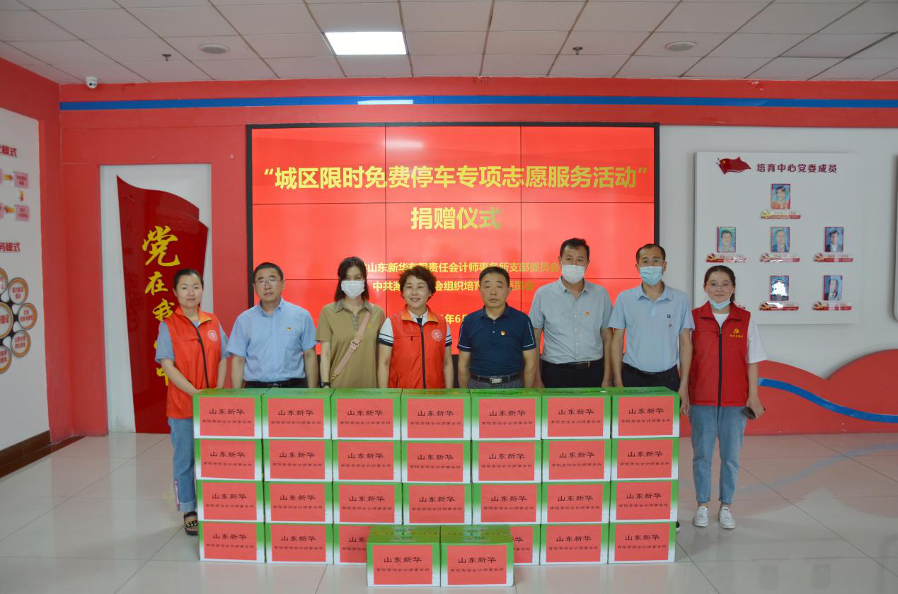 6月30日,新华党支部组织党员向潍坊市社会组织培育中心捐赠矿泉水等防暑降温物资一宗,为我市公益活动助一臂之力。潍坊市注册会计师行业党委委员刘德友、新华党支部书记郑旗及支部委员宿爱民、王祥兴等同志参加了捐赠仪式。潍坊市社会组织培育中心以“政府指导支持、专业团队管理、公益组织受益”的模式,致力于为初创时期、草根阶段、转型时期的公益组织提供专业化孵化培育服务。培育中心党委书记曹冬梅向我们介绍了潍坊市公益志愿活动开展情况。目前,潍坊市公益事业蓬勃发展,新华党支部将组织更多员工加入到公益志愿队伍中来。