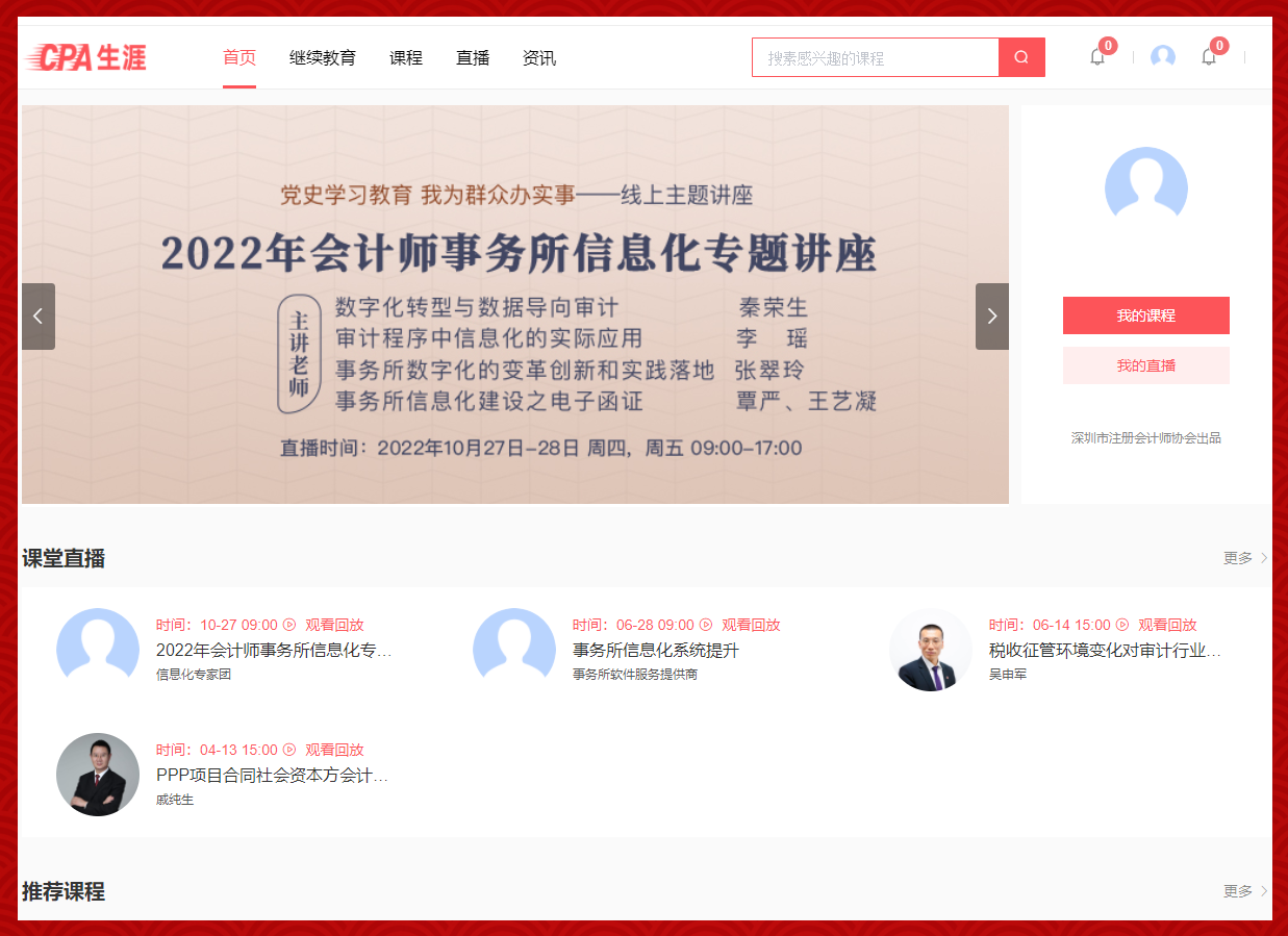 为兼顾中注协对会员继续教育的制度要求与保障会员自身工作生活的便利,山东注协在大量调研省内外继续教育情况,多次论证网络平台开发可行性的基础上,借助社会专业力量合作开发“山东注协CPA生涯在线教育系统”,携手深圳注协共同搭建“CPA生涯”APP直播平台,旨在实现优质教育资源共享、方便会员高效完成年度继续教育培训学时要求。