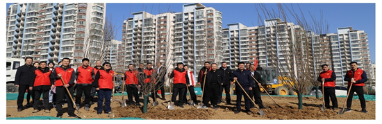 在植树现场,志愿者们精神抖擞,热情高涨,大家明确分工、相互协作、密切配合,搬运树苗、挖坑填土、提水浇灌,将一颗颗充满生机与希望的红梅树苗植入地里,身体力行为临沂生态文明建设出一份力,为临沂生态城的建设留下一抹青春的色彩。