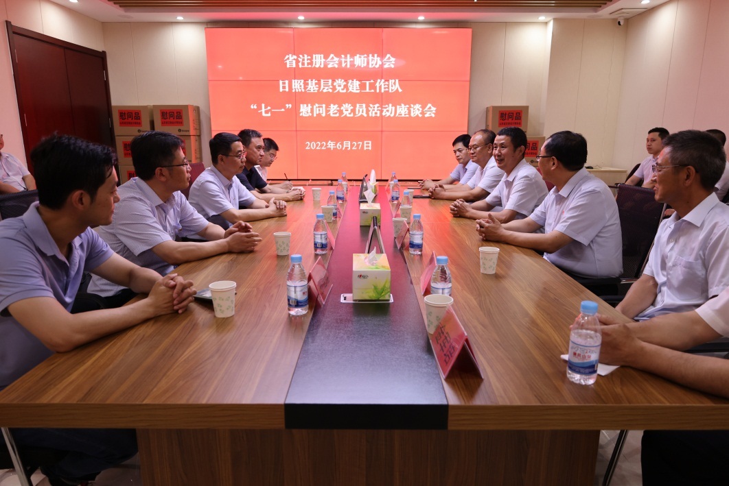 首先,双方在北苗家村工作组党建活动室召开“七一”慰问老党员活动座谈会。文毅代表基层党组织建设驻日照工作队欢迎省注协一行,感谢省注册会计师行业对驻地老党员的牵挂与关注。梁仕念表示本次活动得以成行,得益于各位领导的高度重视和大力支持。目前,省注协在省厅、省行业党委领导指导下,步入了规范化建设道路,形成了党的领导、法律授权、政府监督、民主管理“四位一体”的法人治理体系和运行机制,以党建为抓手,引领各项工作有序推进。感谢省厅多年来对协会建设和行业发展的关心、支持和重视,协会将继续笃行公益事业、勇担社会责任,尽职尽责发挥行业平台、桥梁和纽带作用,尽心尽力服务会员、服务行业、服务国家。