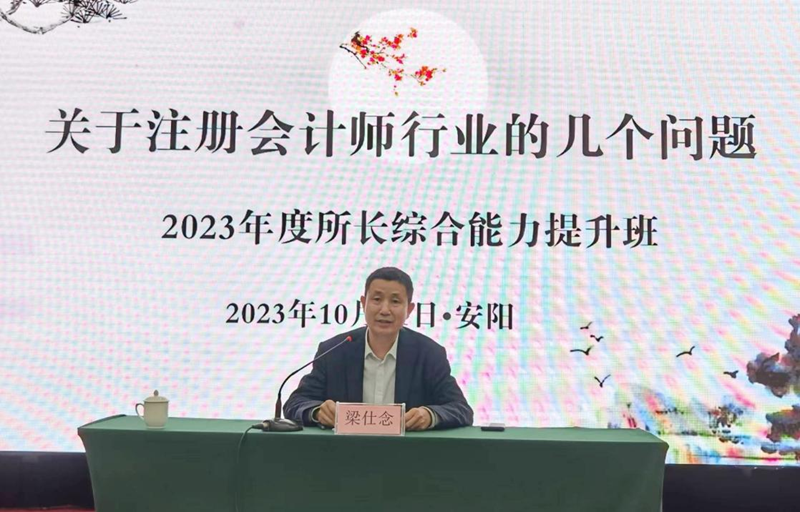 10月30日-11月2日,山东注协委托中国财政经济出版社培训中心在河南安阳成功举办山东省2023年度会计师事务所所长综合能力提升班。山东注协副会长兼秘书长梁仕念作行业形势研析主题交流并全程督学,来自全省120余名会计师事务所所长(负责人)、副所长或支部书记参加。