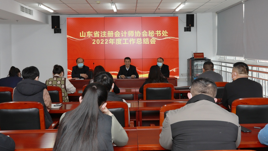1月18日下午,山东注协秘书处在四楼会议室召开 2022年度工作总结会。协会副会长兼秘书长梁仕念作了主题年度总结,副秘书长张吉轩宣读关于表彰2022年度秘书处优秀员工的决定,会议由副秘书长孔勃主持,秘书处全体工作人员参加。