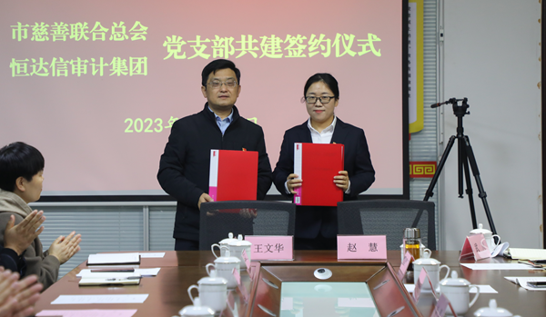 2023年11月21日上午,临沂恒达信会计师事务所党支部和临沂市慈善联合总会党支部,在商会大厦21楼党员活动室开展支部共建主题党日活动。