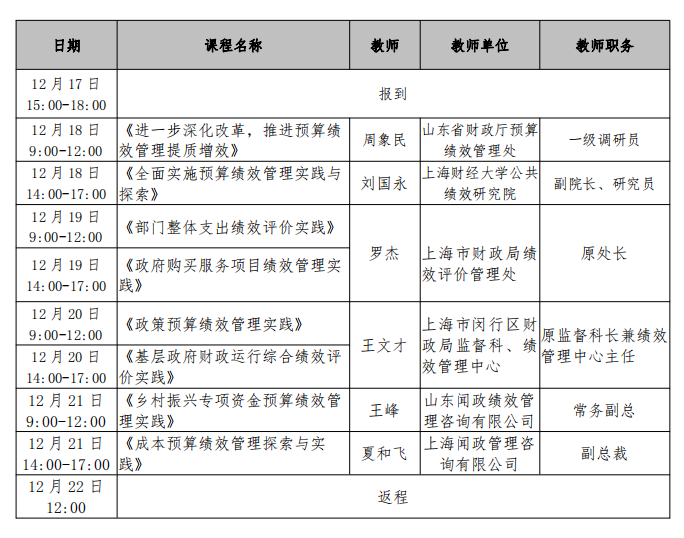 2023年12月17日15:00至18:00报到,12月22日返程。