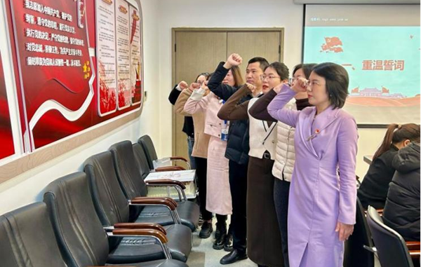 首先,由李艳书记领誓,带领全体党员重温了入党誓言。在一句句铿锵有力的宣誓中,党员们更加深刻地认识到了自己的责任和使命,进一步坚定了对党的忠诚和信仰。