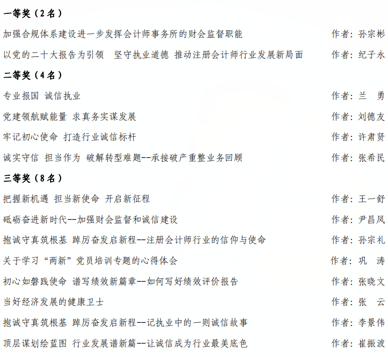 为更好推动党的二十大精神在行业走深走实,切实贯彻落实中央两办《关于进一步加强财会监督工作的意见》、财政部《注册会计师行业诚信建设纲要》文件精神,掀起深入学习宣传贯彻热潮,增强行业诚信观念,提升执业质量,营造守法经营、诚信服务的行业文化,山东省注册会计师协会举办了“抱诚守真筑根基 踔厉奋发启新程”征文活动。