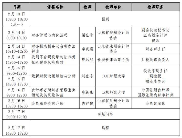 (三)签到:参培人员请于2月14日上午9:00前携带本人身份证原件在泰安东岳山庄一楼四季厅准时刷卡签到。