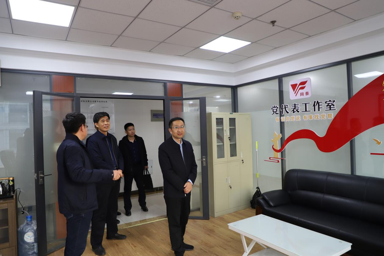 调研组参观了党建阵地和党代表工作室,对各项党建工作给予了肯定。并指出,同泰坚持党建引领企业发展,充分发挥了“两新”组织服务大局、奉献社会的作用,成绩来之不易。