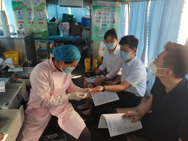 为迎接即将到来的世界献血者日,持续发挥青年党员团员热血奉献精神,山东大明联合会计师事务所党支部联合大明团支部组织开展了“血同脉、爱同行”无偿献血爱心主题党日活动。活动当天,由大明党支部宣传委员张欢欢带队,党员朱旭东、荣永奎及部分团员代表赴东营市东城三村采血点无偿献血。每人献400ml全血,东营市中心血站为大家发放献血证和爱心水杯。