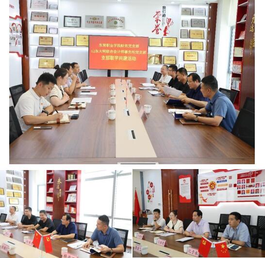 近日,山东大明联合会计师事务所党支部与东营职业学院财务党支部开展支部联学共建,东营职业学院财务党支部书记李洁玉、组织兼纪检委员武蒙、宣传委员孙永亮一行5人,大明事务所首席合伙人宋继亮、党支部书记索娟娟、组织兼宣传委员纪子永、党务工作者荣永奎参加活动,双方为进一步发挥基层党组织战斗堡垒作用和共产党员先锋模范作用,积极探索基层党建工作新思路、新模式,增强基层党组织的组织力和凝聚力进行了座谈交流。